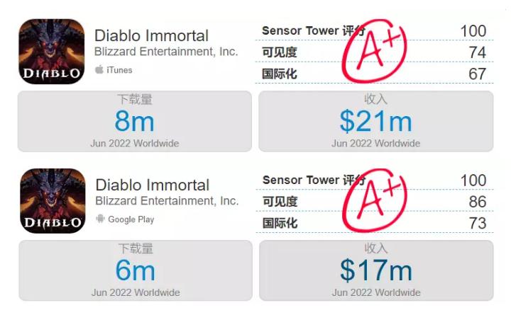 长期以来,收入TOP30的头部位次排名相对稳定,但网易与暴雪联手的《暗黑破坏神:不朽》却打破了看似一成不变的局面。