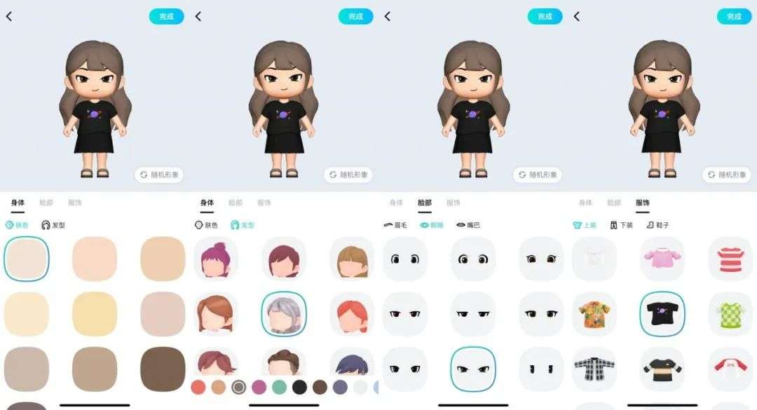 「FateU」的虚拟形象风格与啫喱等产品类似,走 Q 萌风格。「FateU」的虚拟形象创建基本可以分成面部和服装两个类别。