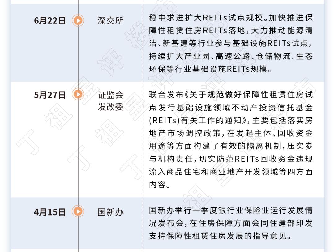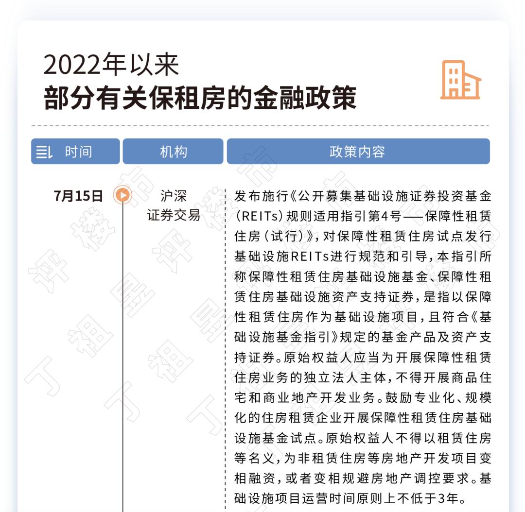 7月15日,沪深证券交易所发布施行《公开募集基础设施证券投资基金(REITs)规则适用指引第4号——保障性租赁住房(试行)》,对保障性租赁住房试点发行基础设施REITs进行规范和引导。