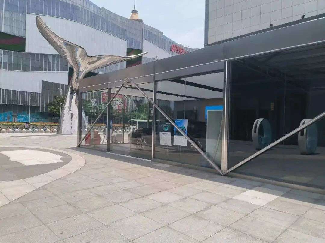 他们的店铺原来也在一旁的商场中,本来共有6家新能源车企商超店,现在屋外4个空荡的大棚已成了无主之地。