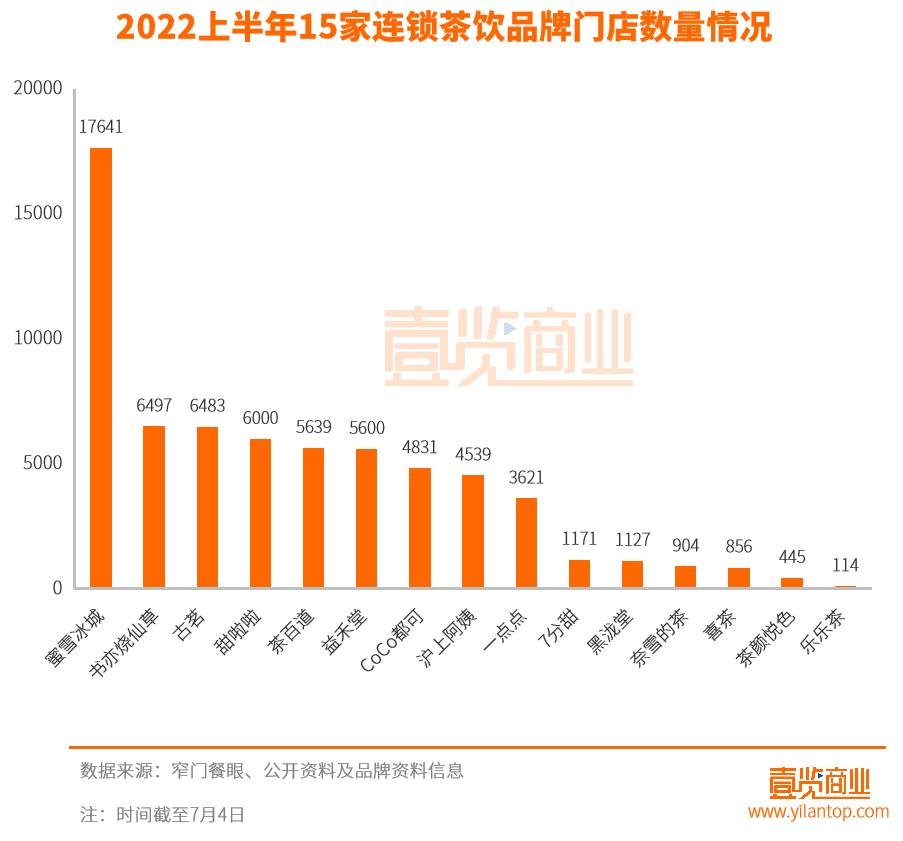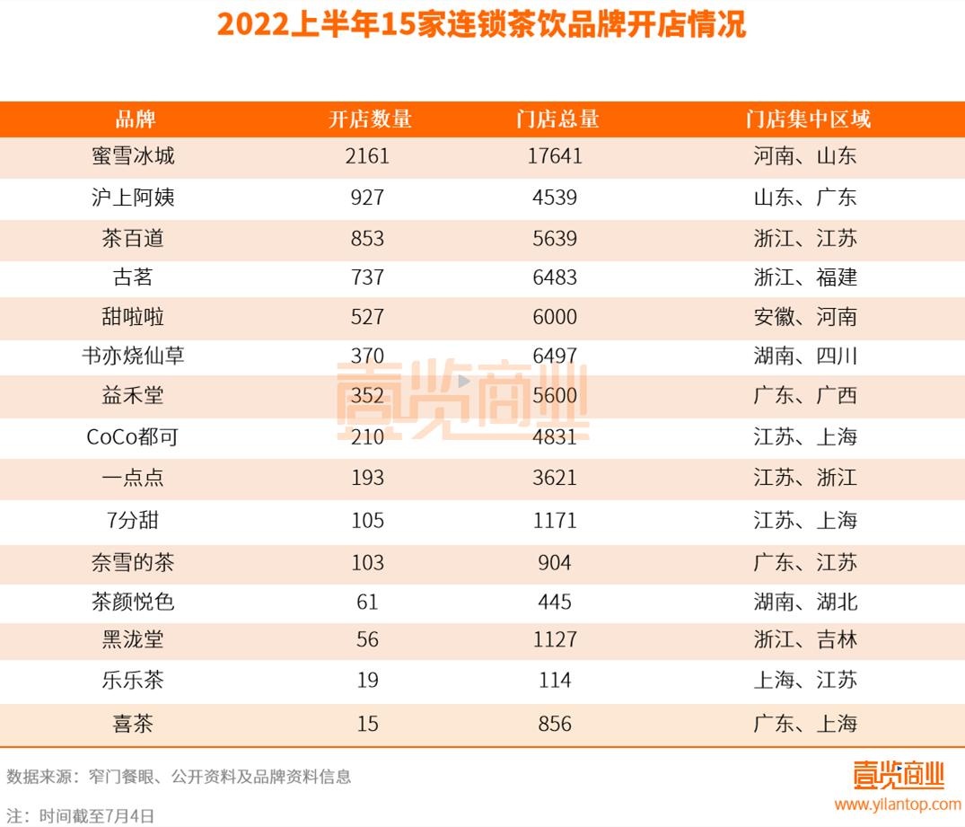 据壹览商业不完全统计,2022上半年,国内主要的15家连锁茶饮品牌共开新店约6689家,门店存量超65000家。