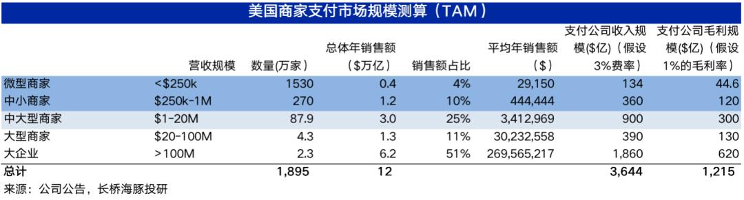 从上文可见,支付手续费收入是公司商家业务营收的主要来源,那么单以美国市场来看,支付行业的潜在市场规模到底有多大?