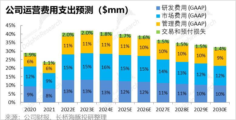 因此,在2022到23年、甚至到24年公司的三费支出都会明显扩张,从而严重拖累公司的经营利润。不过,海豚君认为之后随着公司新业务逐步成熟,且公司营收规模的扩大,三费支出也将稳步回落,经营杠杆重新显现。
