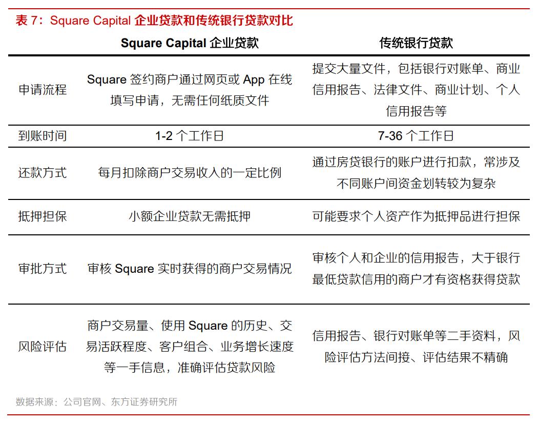 1)向Square服务的商家提供的短期、小额的(不超过25万美元)经营贷款(Square Loan);