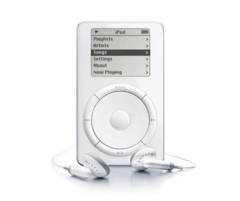 iPod 于 2001 年首次发布,与 CD 播放机不同,它能够存储数千首歌曲。和艾维的其他标志性设计一样,它吸引人的部分原因是,人们可以很容易地用滚轮设计浏览长长的歌曲列表。