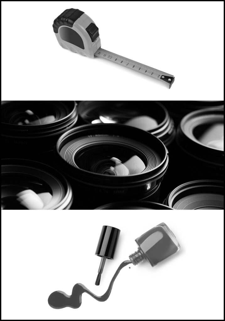 TRIZ 发明原理7、套娃:(上)伸缩卷尺; (中)伸缩相机镜头; (下)指甲油瓶和刷子。