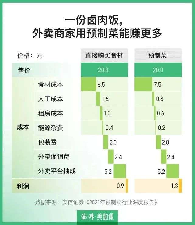 这意味着,采用预制菜的外卖店家,虽然毛利更低,但净利更高。