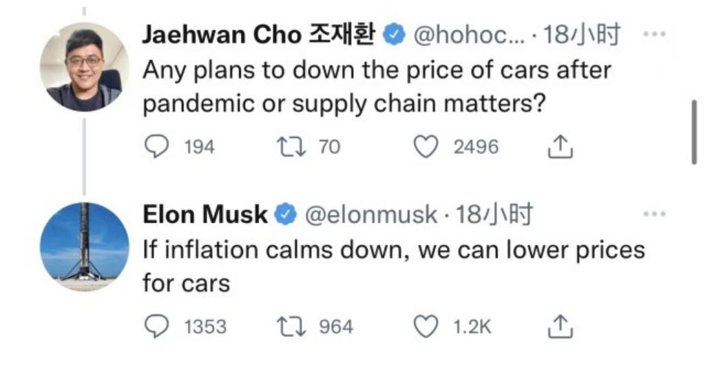 特斯拉显然也感受到了来自消费端的压力。因为马斯克上周五还在推特上表示,“如果通货膨胀降温,我们可以降低汽车价格。”而在这之前,特斯拉至少已经经过了5轮价格上涨。