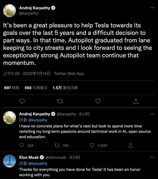 但之后不久特斯拉的人工智能(AI)与无人驾驶部门主管Andrej Karpathy在推特上宣布离职,却让这件事变得耐人寻味。