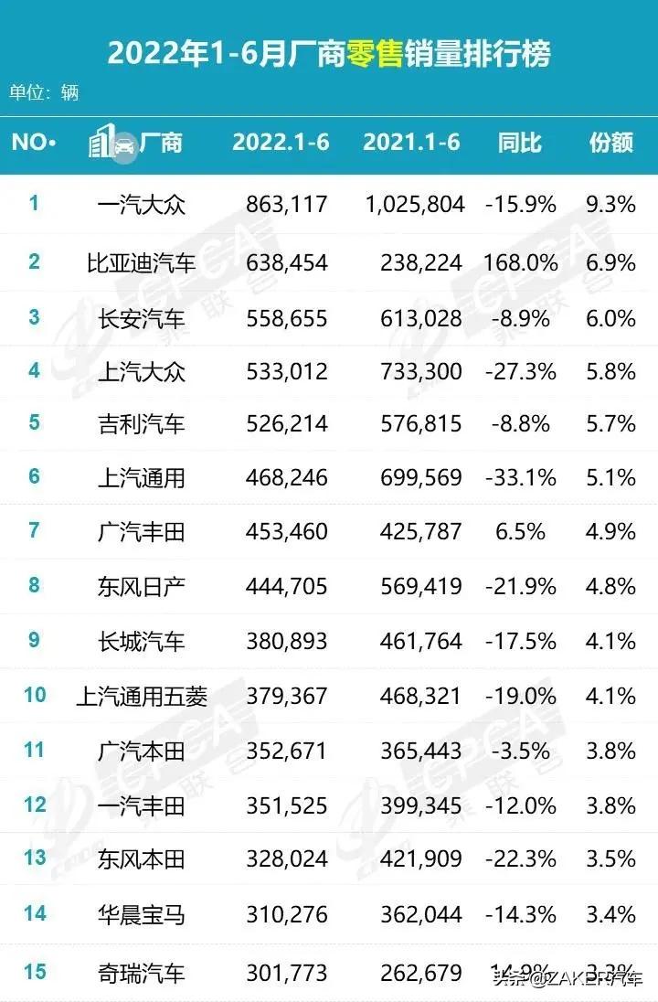 从今年上半年来看,主流车企的销量其实基本上都是处于下滑态势的。据乘联会发布的上半年数据,2022年1-6月狭义乘用车累计销量926.1万辆,同比下滑7.2%;其中轿车同比下降5.3%,SUV下降7.1%,MPV下降23.6%。