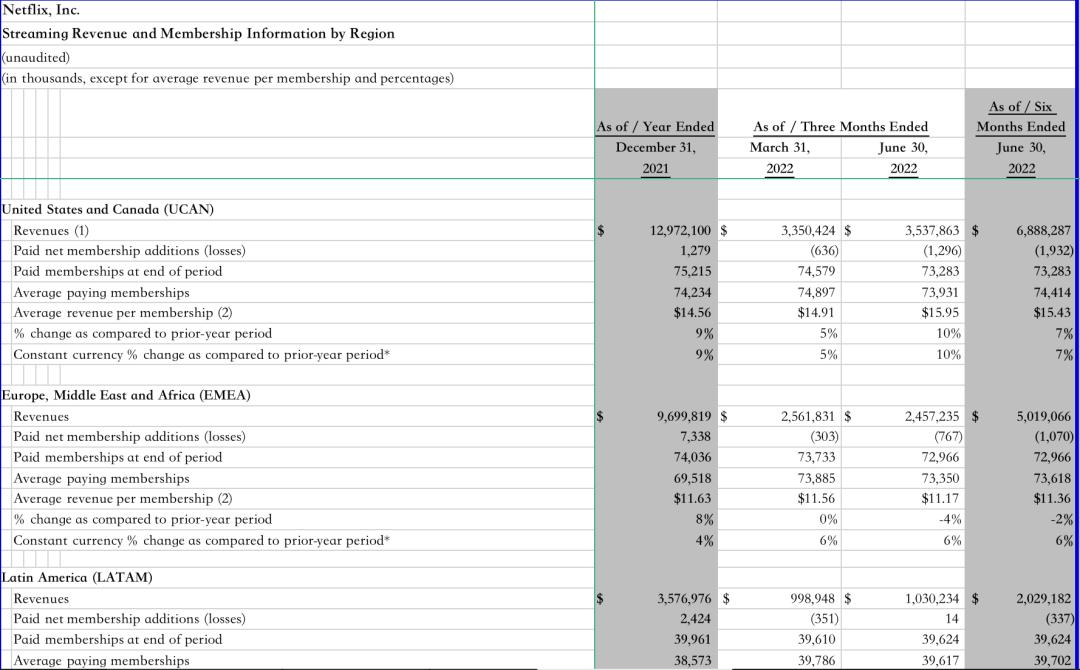 继上一季度出现自 2011 年以来首次订阅用户负增长,付费订阅用户净减少 20 万后,奈飞在二季度继续流失了 97 万付费用户。