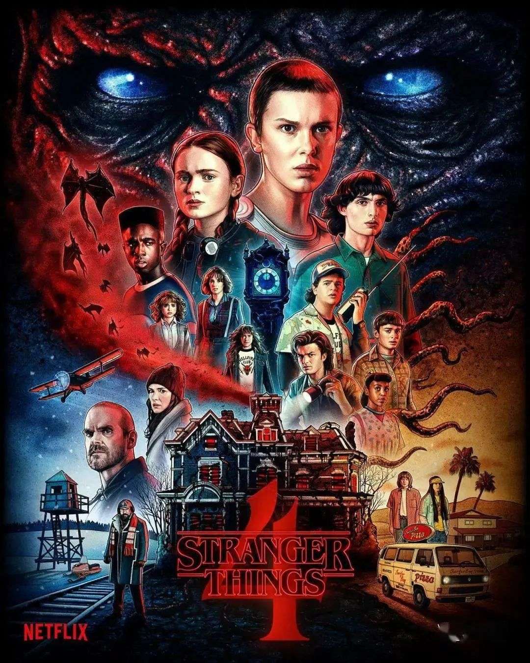 《怪奇物语》是出自达弗兄弟的科幻恐怖剧集,每一季的故事主线都是围绕一群少年与一位具有超能力的少女联手对抗怪物展开,第四季上半部在 5 月 27 日上线后的首四周便录得 7.8 亿小时的观看时长,超越《布里奇顿家族》第二季的 6.6 亿小时,成为奈飞英语剧集收视冠军,第四季下半部于美东时间 7 月 1 日上线,观看时长在发布后的一个月内就达到 13 亿小时。
