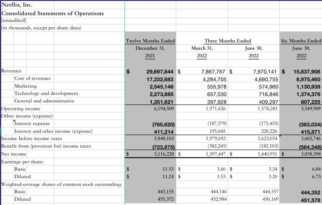 根据财报,二季度奈飞营收为 79.70 亿美元,与去年同期的 73.42 亿美元相比增长 8.6%,低于分析师预期 80.4 亿美元;净利润为 14.41 亿美元,与去年同期的 13.53 亿美元相比增长 6.5%;每股摊薄收益为 3.20 美元,去年同期为 2.97 美元,高于分析师预期 2.91 美元。