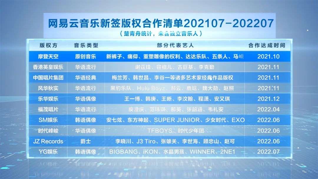 我认为值得关注的有近年来升温的三类内容:经典流行、垂类音乐和偶像音乐。例如网易云过去一年的版权合作,也可以分为这三类内容。它们各自承担着不同的价值。