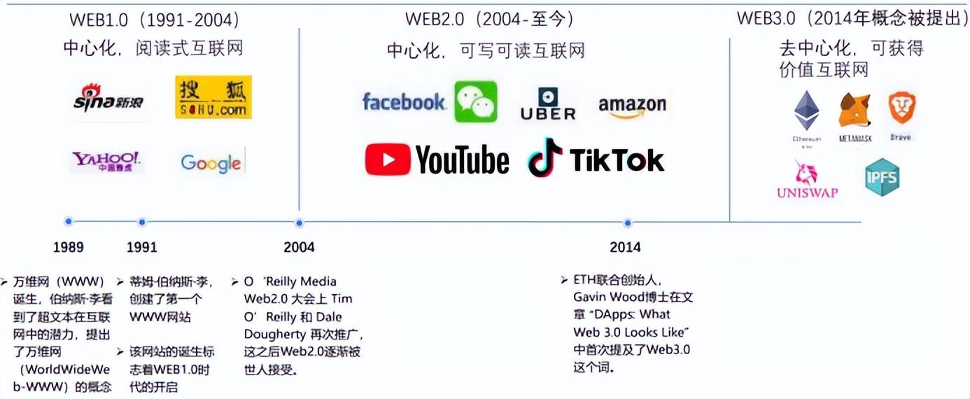 如果将互联网发展分为三个阶段,出现在Web 1.0和2.0时代的大厂名字,都成了夸张的印钞机,这就解释了为什么Web3能在资本寒冬中,获得那么多投资人的青睐。2022年之初虽然形成了一种“言必Web3”的氛围,但却没有任何一个人可以笃定的说Web3是什么并获得大家的一致认可。目前市场上认可度较高的共识是:如果说Web1.0是“只读”的互联网,Web2.0是“读+写”的互联网,那么Web3就是“读+写+拥有”的互联网。