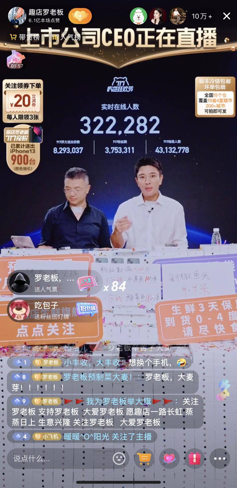 抖音是永远的赢家。继交个朋友、东方甄选后,“趣店罗老板”成为又一个被抖音“眷顾”的直播间。据媒体报道,字节跳动商业化团队派了数十位工作人员到趣店大本营厦门现场支撑,再次用直播“拯救”了上市公司股价。