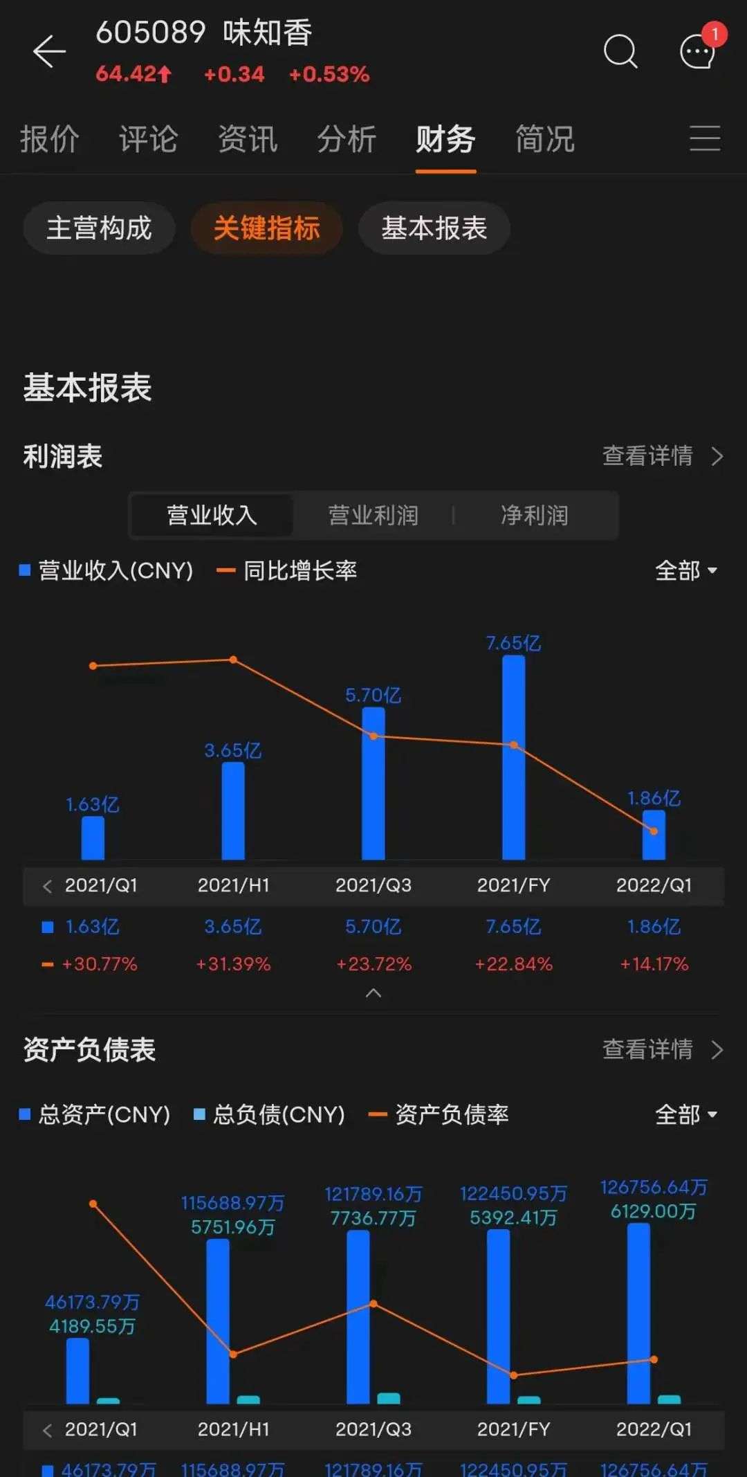 去年6月,味知香股价持续暴涨,市值一度达到104亿元。2022年7月20日,味知香市值已跌至64亿元,一年市值蒸发40亿元。