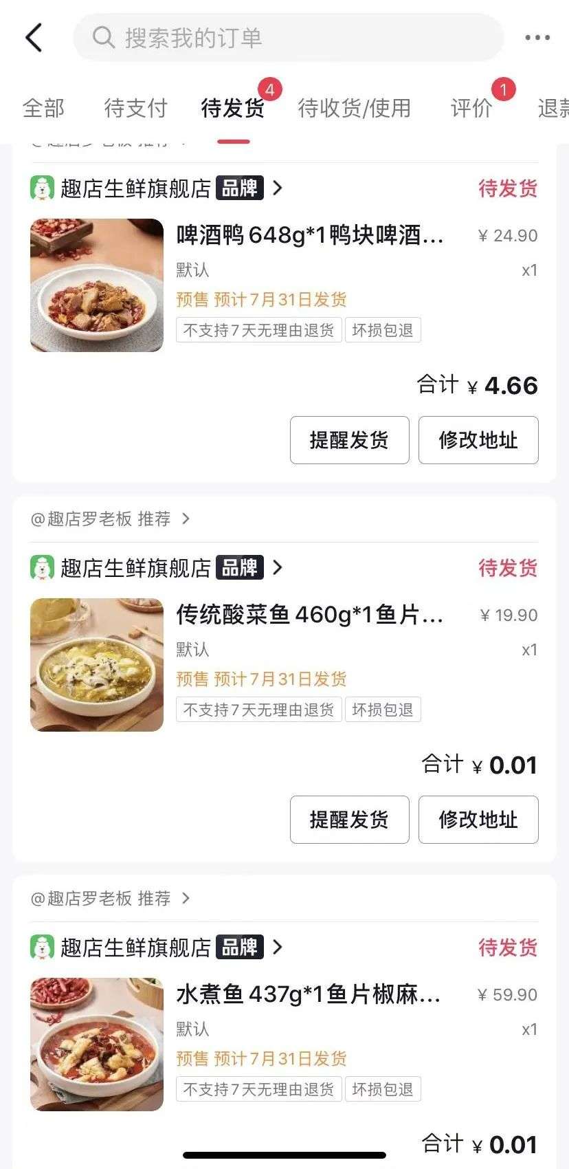 当天,“趣店罗老板”抖音直播间大概送出850万份1分钱预制菜,以每单顺丰冷链运费15元,每份菜的成本10元计算,送出1份的成本是25元,合计这波营销成本超过2亿元。即便可能有消费者抢到2份以上的一分钱菜,并以此平摊降低了冷链成本,保守估计,罗敏至少也要付出上亿元。