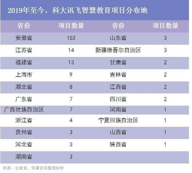 同时也反映出科大讯飞智慧教育项目在地理分布及数量上都有很大的拓展空间,也是未来的增长点之一。