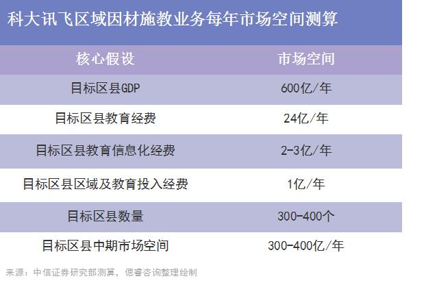虽然G/B端支出受财政政策影响,但是,中信证券严格采用GDP方式,测算出市场空间400亿。对于目前在AI教育行业领先的科大讯飞来说,拿到200亿市场应该不是难事。