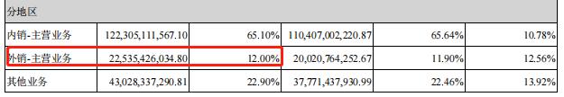 我们先看一看格力的销售构成。2020年外销的营收是200多亿占了营收的11.9%,2021年的外销金额是225亿,占了12%。