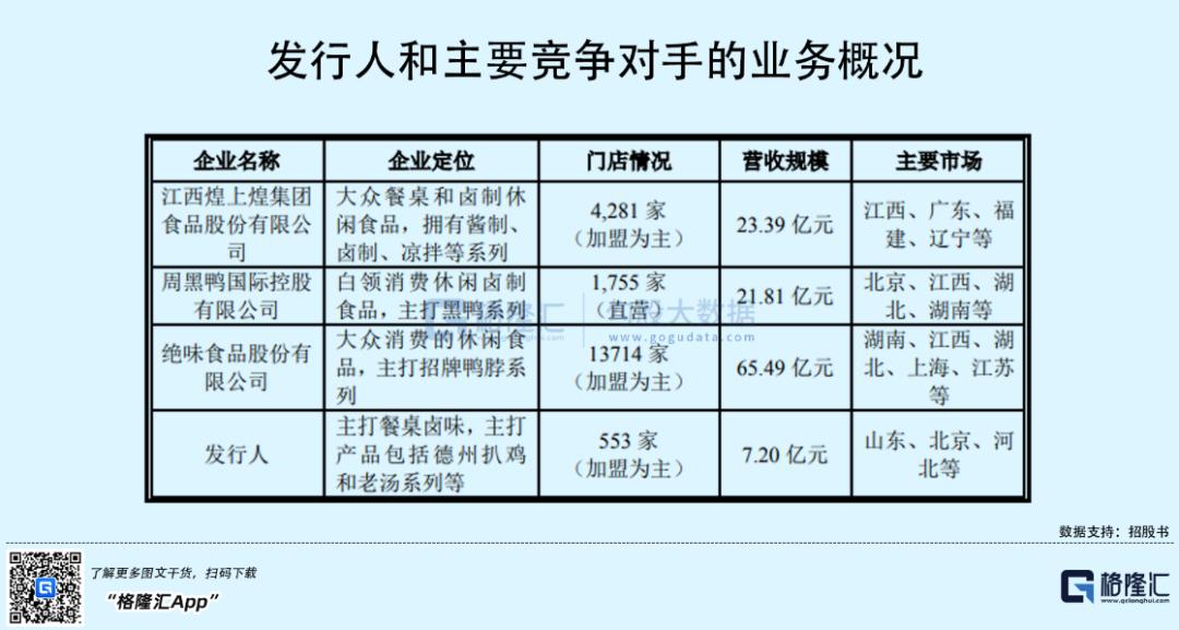而玩味的是,德州扒鸡将煌上煌、周黑鸭、绝味食品等视为对手,但事实上,无论是在营收规模还是在门店数量上,德州扒鸡都处于弱势。