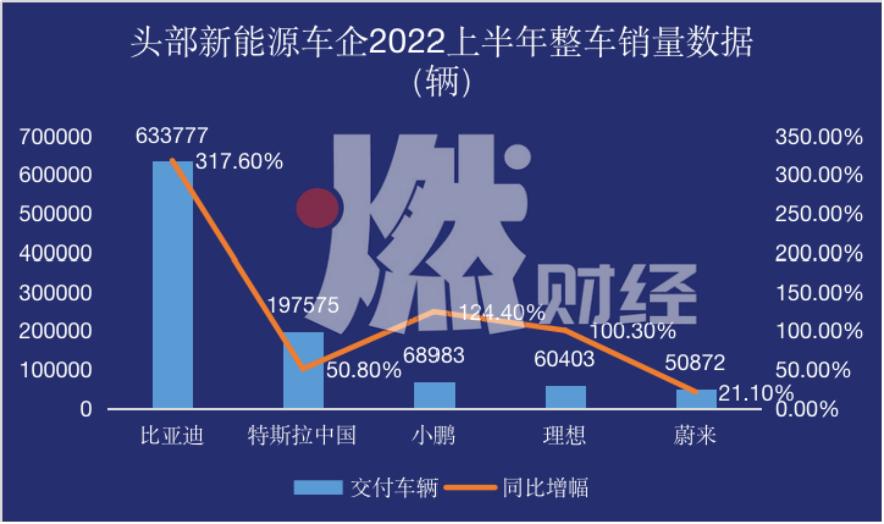 据乘联会公开数据,2022年上半年,只有比亚迪63万辆的销量远超特斯拉中国的19万辆。而被赋予造车新势力的蔚小理,上半年销量依旧停留在5-7万辆之间,与特斯拉的差距较大。
