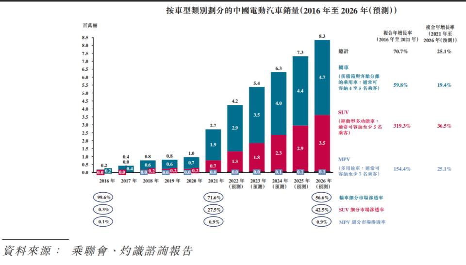数据佐证了buzz的说法。威马汽车曾在其上市招股书中披露过中国不同车型的增长速度,2016-2021年,SUV的年复合增长率已经达到了319.3%,而同时期轿车的年复合增长率仅为59.8%。