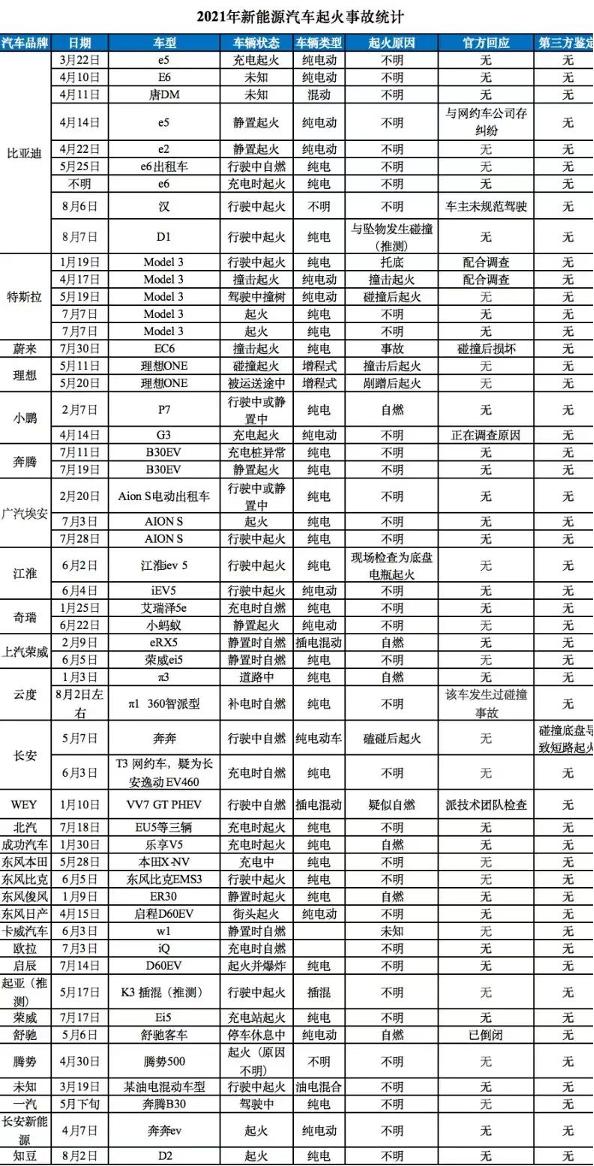 曾有机构统计了2021年新能源车起火事故,其中仅有不到1/4的事故,车企公布了起火最终调查的原因。而官方正面回应事故善后事宜的,更是少之又少。