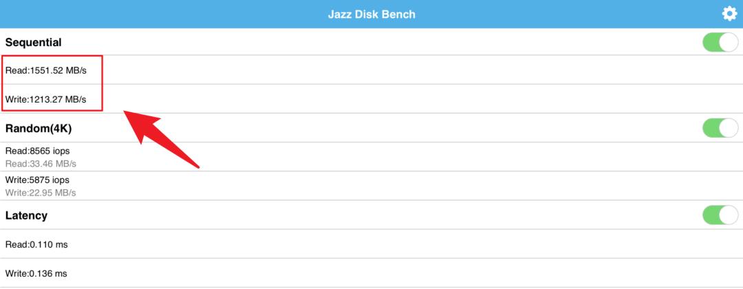 而在更换了 512GB 的硬盘之后,它的读取速度来到了 1500MB/s,而写入速度也有 1200MB/s,无论是读取速度还是写入速度,都有了质的提升: