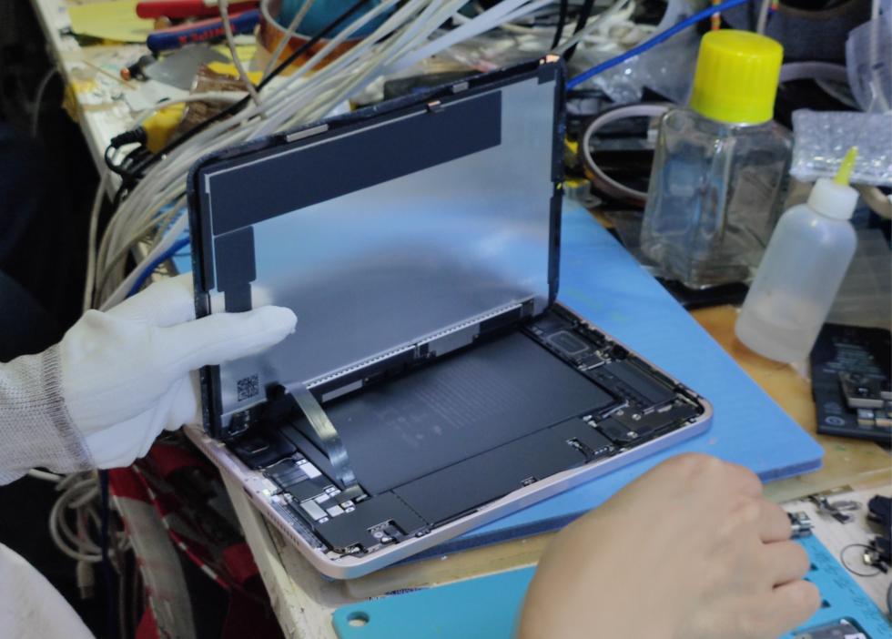 就这样没过一会,iPad 的屏幕与机身就完成了分离,有一说一整个过程看得我是心惊肉跳,生怕老师傅用力过猛,一个不小心就把屏幕给掰断了~