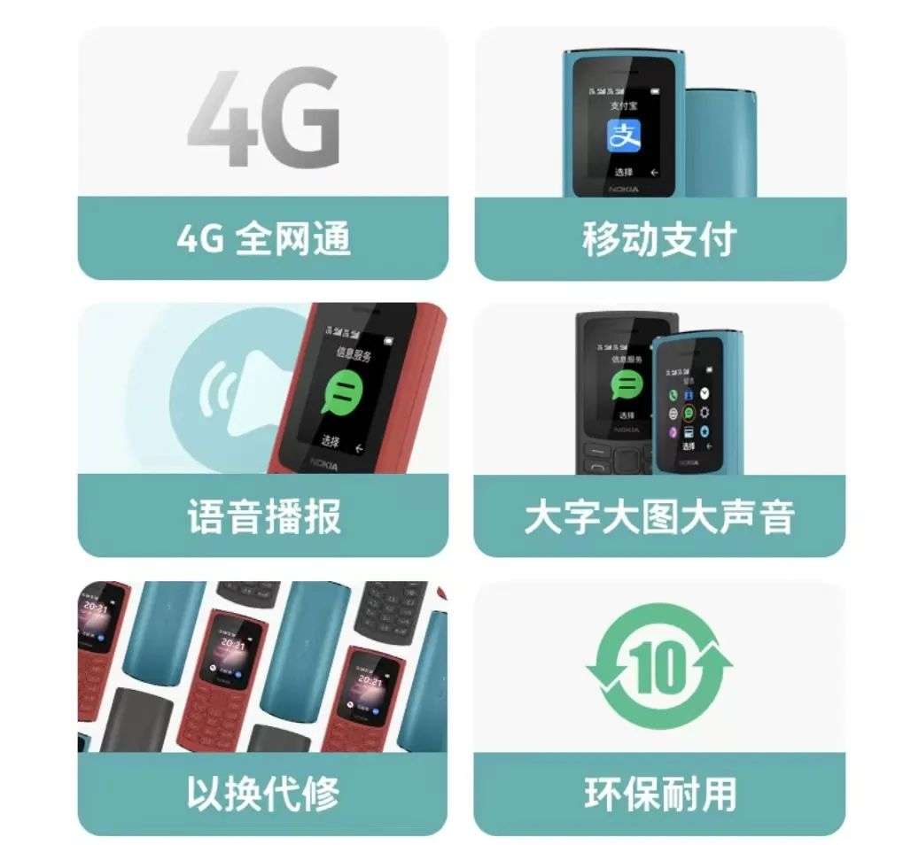 4G网络、语音播报以及“大字大图大声音”等标配自然不会缺席,就连移动支付也难逃HMD法眼。