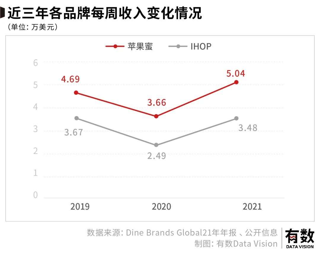 举例来说,Dine Brands Global是美国的一家连锁正餐餐饮品牌,旗下拥有苹果蜜和IHOP两个连锁餐饮品牌。与海底捞一样,它主要收入也来自于堂食。Dine Brands Global的经营状况甚至已经超过了疫情之前。