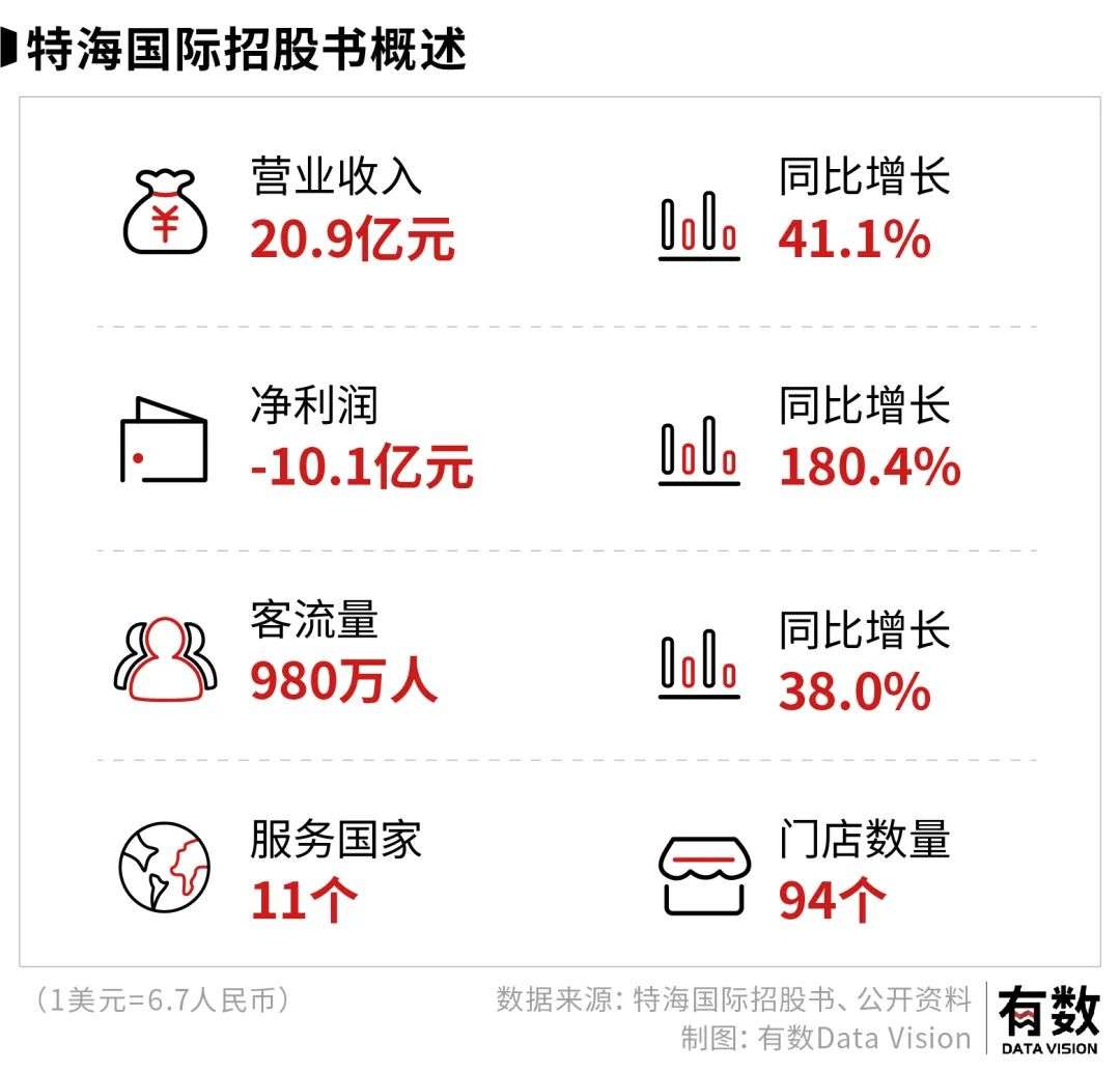 整体来看,特海国际的门店数量,从2019年的38家提高到2021年的94家,增长近1.5倍。其中门店数量增长最多的,来源于华人最多的东南亚地区,由20家提高到55家,增长为1.8倍,高于整体30%。