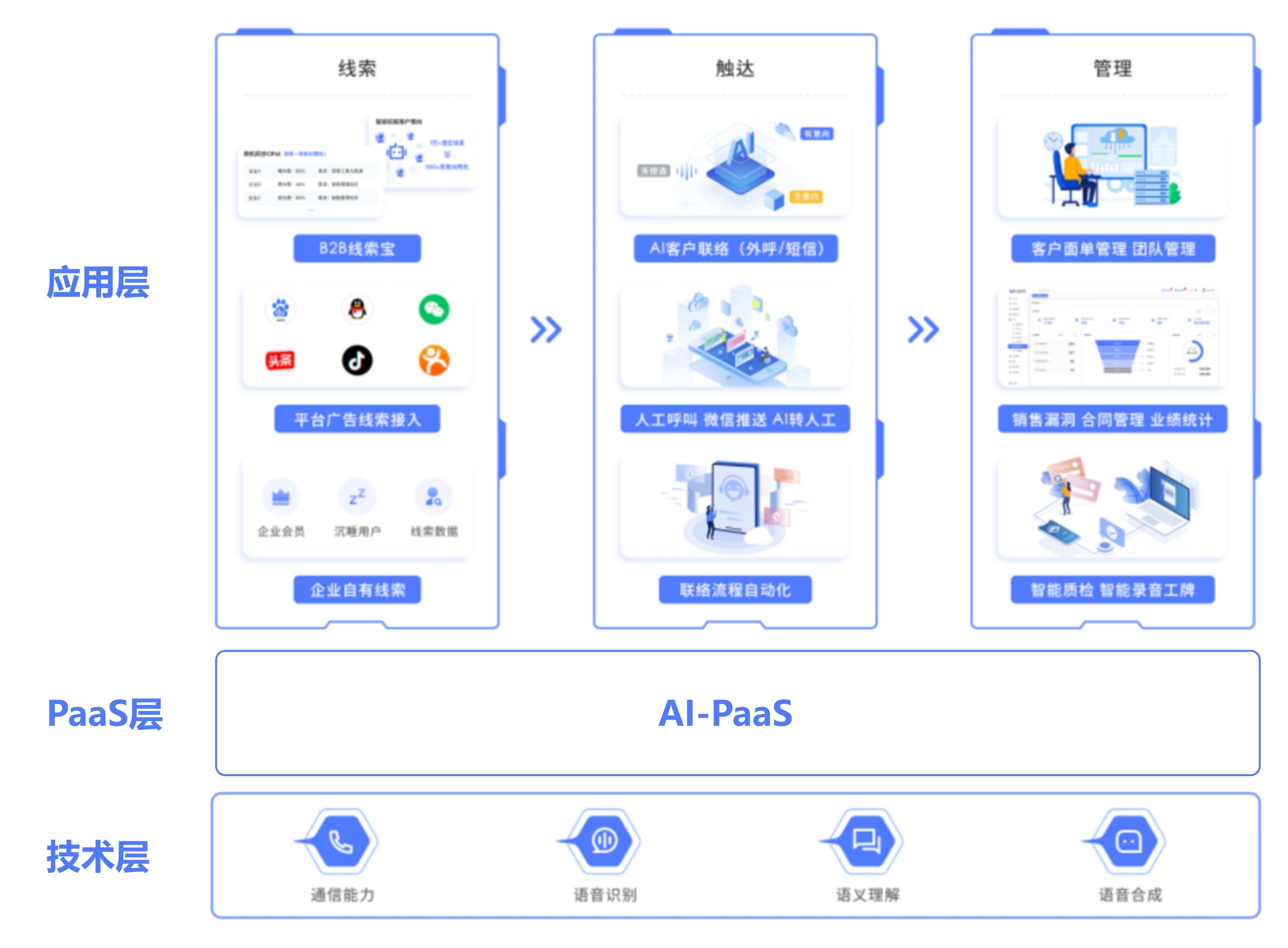 "从投入角度来看,我们发现企业耗费了大量的人力、财力在客户联系上,这其中很多都是无效的。"云蝠智能创始人魏佳星分析说,"所以,我们定下了基本的产品思路,提供客户管理运营的数字化CRM saas产品以及专注外呼联络服务的AICC系统。"