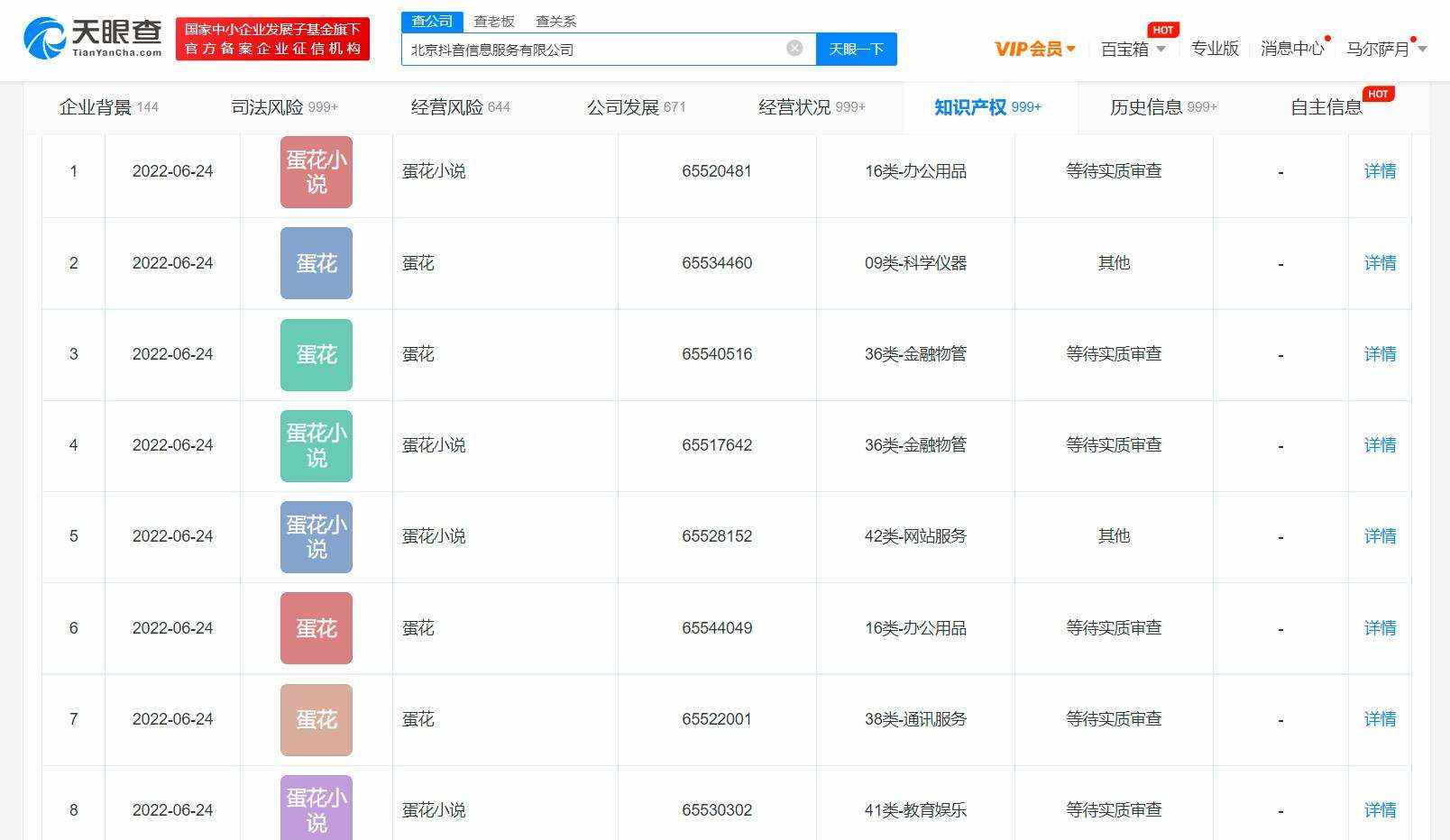 36氪获悉,天眼查App显示,近期,北京抖音信息服务有限公司申请注册多个“蛋花”“蛋花小说”商标,国际分类包括教育娱乐、社会服务等,目前商标状态均为等待实质审查。此前据媒体报道,抖音近期在平板端的首页内测试名为“小说”的功能频道。
