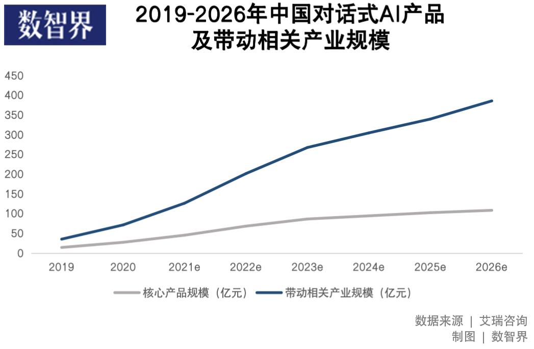 根据《中国对话式AI行业发展白皮书》,2021年,对话式AI的市场规模为45亿元,带动规模126亿元。预计2026年,对话式AI的市场规模将达到108亿元,带动规模超385亿元。