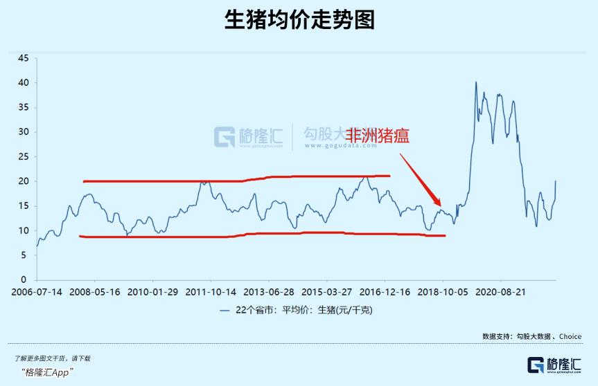 其实,按照正常繁育体系推演,上行或是下行周期都应该是22个月。但由于大周期中会有小周期,会受到环保、瘟疫、消费淡旺季等多重因素干扰,上下行周期的时间往往会有不小的变化。