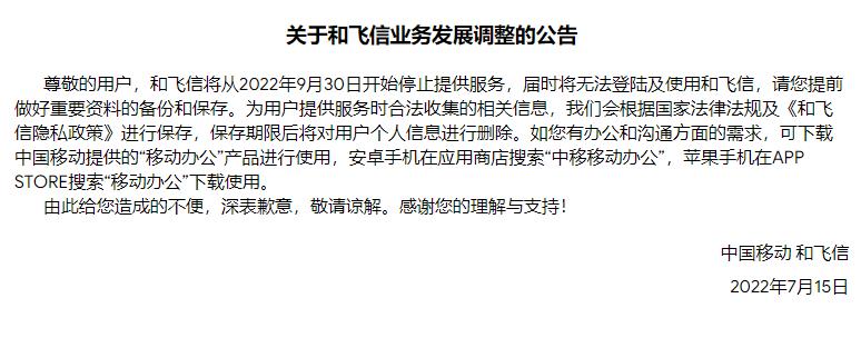 7 月 15 日,中国移动宣布和飞信将从 9 月 30 日开始停止服务,意味着这个历经 15 年的“国民级”通讯软件将正式走下历史舞台。