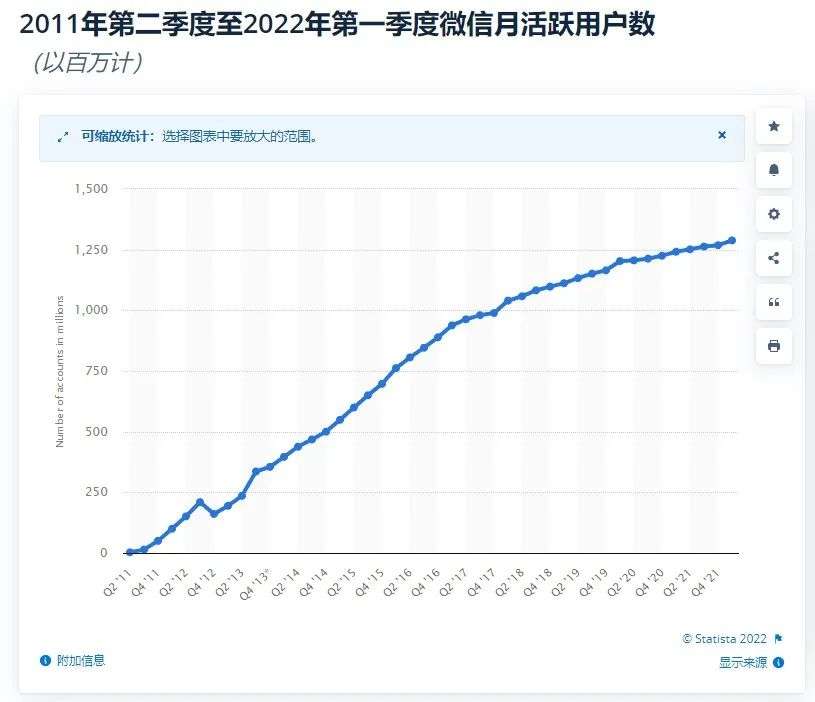 2012 年 3 月,微信用户数突破 1 亿,半年后达到 2 亿;2013 年 1 月,突破 3 亿;2014 年年底,突破 5 亿......