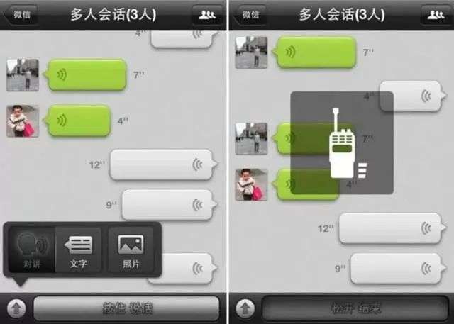 微信刚发布的时候,加入了对讲机功能,表情、图片、语音、多人群聊,一应俱全,方便易用。