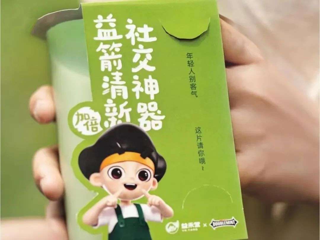 因为奇特的口感,益禾堂新品被不少网友调侃为“牙膏奶绿”、“绿箭奶绿”,官方索性和六必治、绿箭来了一波搞怪联名,斩获了一大波好感。