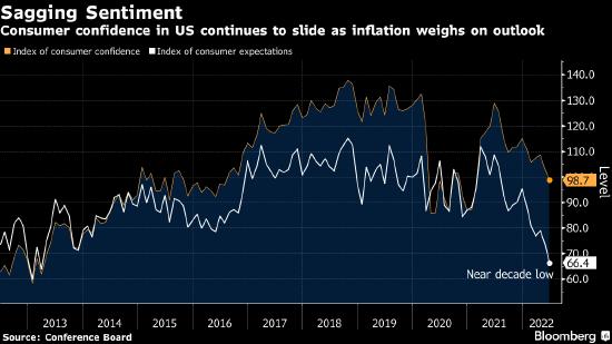 尽管美国失业率仍接近几十年来的最低水平,但6月份消费者信心指数却降至有记录以来的最低水平,这是一个令人担忧的迹象,因为家庭支出约占美国经济产出的70%。