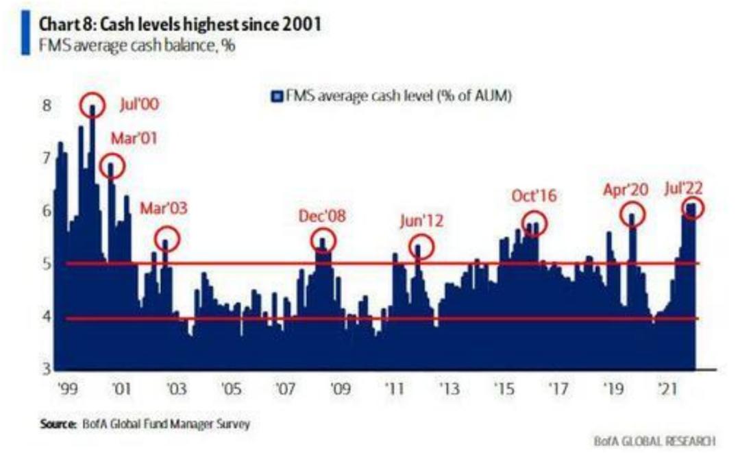 不过值得注意的是,美股反弹并未吸引资金大举回流。据了解,在截至7月20日的一周内,美国股票基金录得净卖出84.5亿美元,创近五周最高纪录。投资者选择在议息会议前离场观望,这与此前美银美林公布的基金经理调查结果一致,出于对经济前景和政策不确定性的担忧,受访机构对股票的配置跌至2008年10月以来的最低水平,现金持有比例已经升至6%,创近21年新高。