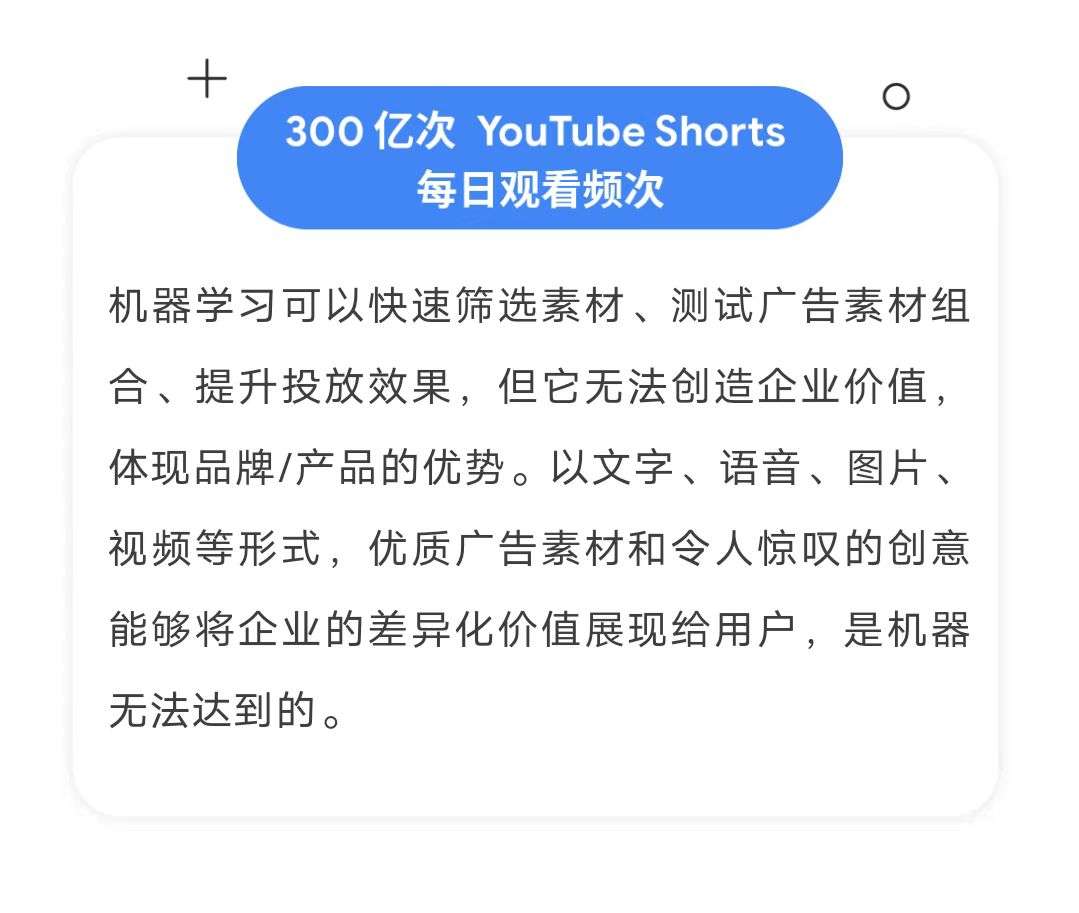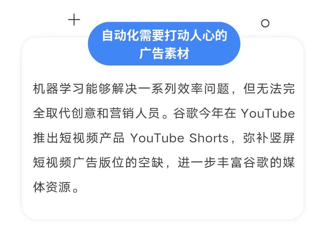 面对海量数据,谷歌利用机器学习为核心的自动化解决方案降本增效。比如更先进的自动化产品Performance Max、最新广告版位YouTube Shorts,以多元营销手段帮助广告主达成营销目标。