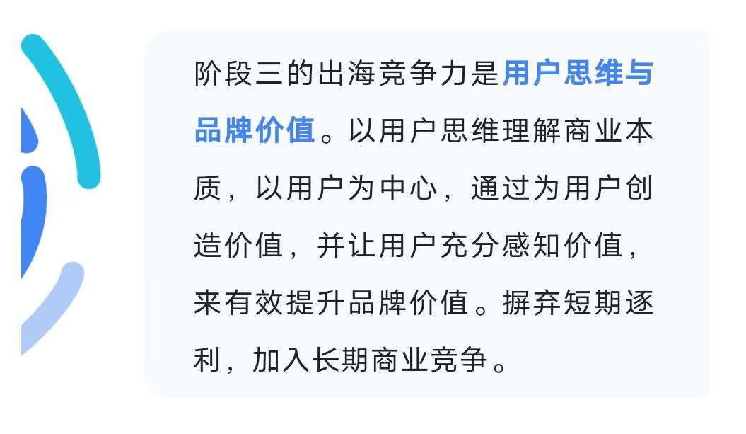 “出海绝不是短期竞争,而是一场持久战。中国品牌要想赢在第三阶段,需要从流量思维转换到产品和用户思维。”
