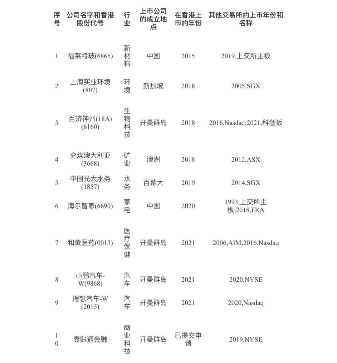 在香港二次上市的上市公司