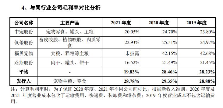 至于毛利数据落后于上海福贝,乖宝宠物的保荐机构中泰证券认为,“福贝宠物基本为主粮销售,而发行人的主粮收入占比为 35%左右, 收入结构与福贝宠物不同,通常情况下,主粮毛利率高于零食毛利率,因此发行人毛利率低于福贝宠物具有合理性。”
