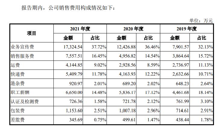 报告期内,该公司赞助了《向往的生活》《上新了故宫》《家有恶猫》等知名综艺节目,并聘请谢霆锋作为代言人,报告期各期公司业务宣传费分别为 7901.57 万元、1.24亿元和 1.73亿元人民币,呈逐年上升趋势。