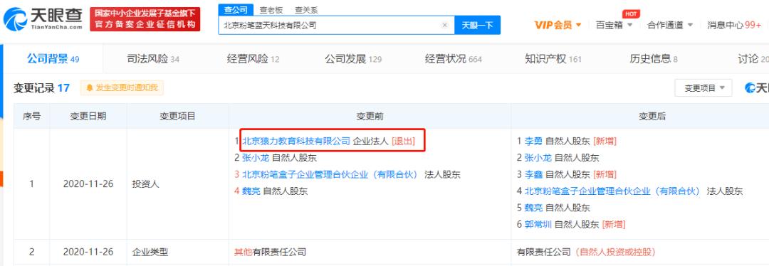 2020年11月,粉笔科技才与猿辅导完全切割。